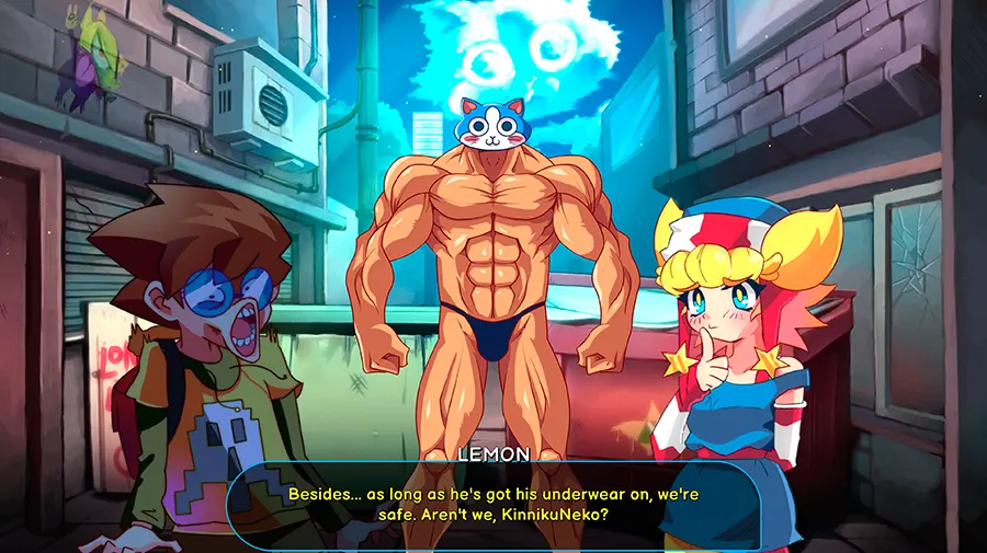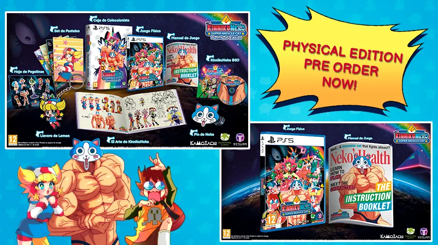 Join KinnikuNeko, a cat with a bodybuilder's body, in this fun 2D